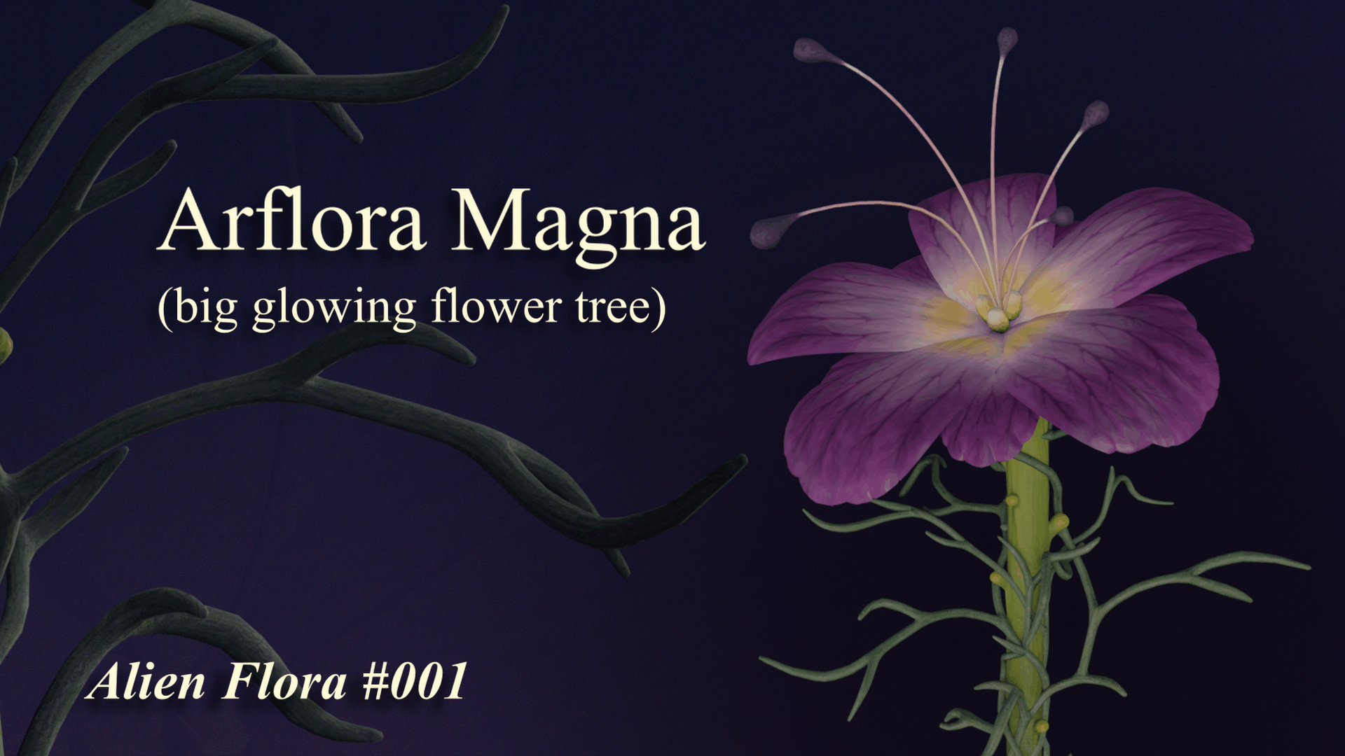 This alien foliage was discovered in a forest on a planet far away. The Arflora Magna (big flower tree) is not only large, but tall and imposing, especially in VR. Recently, a unique variant of the specimen was discovered! It's naturally festive, and strangely tastes like peppermint.