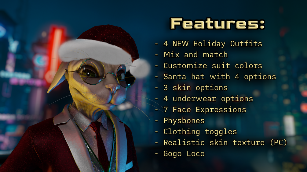 PLEASE NOTE: if you want the source files, you must buy him on my gumroad, avatars bought in game can be far more convenient, but DO NOT currently provide source files.